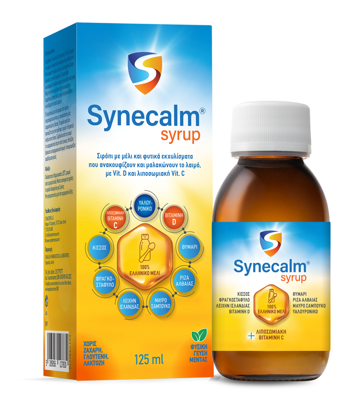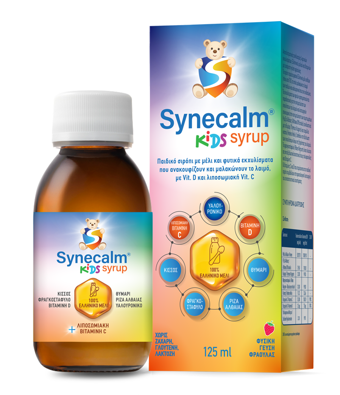 Παιδικό φυτικό σιρόπι για το λαιμό με 100% ελληνικό μέλι, υαλουρονικό, 4 φυτικά εκχυλίσματα, βιταμίνη D και λιποσωμιακή βιταμίνη C.